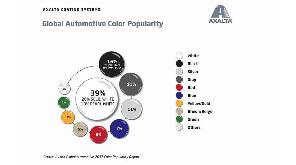 Axalta Coating Systems heeft haar bevindingen bekendgemaakt van haar jaarlijkse wereldwijde autokleur populariteitsrapport. Dat laat zien dat wit in 2017 de wereldwijde leider in de kleurkeuze voor consumentenvoertuigen is. Zwart staat op de tweede plaats met 16 procent en grijs en zilver eindigden voor het tweede opeenvolgende jaar op de derde plaats met 11 procent. “Met zijn moderne uiterlijk blijft wit wereldwijd de bestseller", aldus Nancy Lockhart, wereldwijde kleurmarketingmanager bij Axalta. “Parelmoer wit won dit jaar vier procent in populariteit, omdat deze multi-coatkleur in alle segmenten wordt gebruikt en het meest wordt gekozen in Japan. Over het algemeen blijven lichte en heldere kleuren in kracht winnen, terwijl de interesse voor lichtgrijze en lichte tot middelmatige blauwtinten in de markt toeneemt." Het rapport van Axalta dat sinds 1953 jaarlijks wordt gepubliceerd is het langstlopende en meest uitgebreide kleurenverslag in de auto-industrie. Het is samengesteld en ontworpen door kleurexperts van Axalta om aan original equipment manufacturers of kortweg OEM’s fascinerende en relevante inzichten te leveren over consumentenvoorkeuren en om hen te helpen weloverwogen besluiten over kleuren te nemen. Axalta heeft meer dan 150 jaar ervaring met een internationaal team van ontwerpers en wetenschappers die zich uitsluitend richten op de fusie van technologie en ontwerp. Meer informatie over het wereldwijde autokleur populariteitsrapport 2017 van Axalta vind u hier.