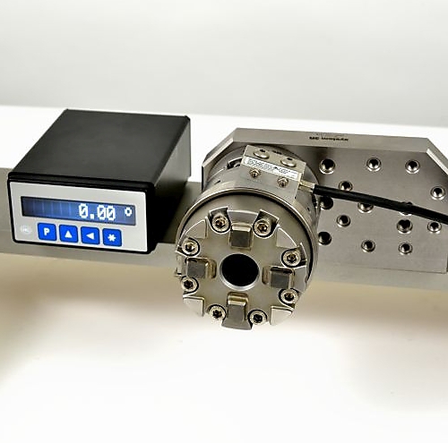 Zwenkbare element met een handmatige Macro chuck en mechanische vergrendeling van de ingestelde positie. Zwenkbare element 360° met encoder en display – Manual Macro chuck en mechanische vergrendeling van de ingestelde positie. Na uitschakeling knippert display als gevolg van referentie zoek vermissende.