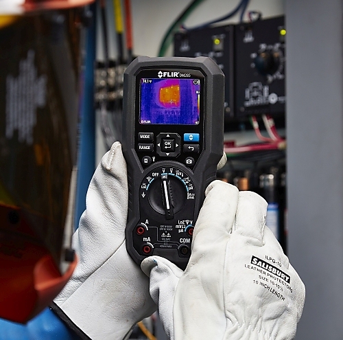 FLIR introduceert de FLIR DM285 industriële digitale multimeter met warmtebeeldcamera, een tool voor inspectie, probleemoplossing en diagnose voor diverse elektro(mechanische) toepassingen en inspectie van verwarmings-, ventilatie-, airconditioning- en HVAC/R-systemen. De DM285 is een digitale multimeter met 18 functies en een warmtebeeldresolutie van 160x120, meet temperaturen tot 400°C, slaat gegevens op voor 10 sets 40K scalaire metingen en 100 beelden, en biedt een opzoekfunctie voor het bekijken van gegevens op locatie. De multimeter is voorzien van geïntegreerde werkverlichting en flexibele batterij-opties. De FLIR DM285 heeft een garantie van 10 jaar op zowel het product als de warmtedetector.