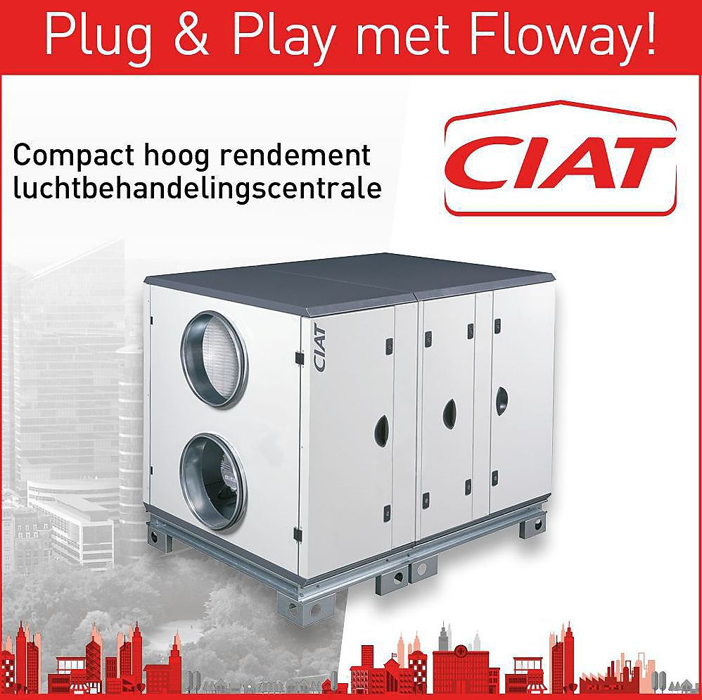 Design en comfort in perfecte harmonie. Floway is een compacte, zelfstandig en stil werkende dubbele flux luchtbehandelingskast. Standaard uitgerust met hightech componenten: EC-technologie (elektronische omschakeling), ultramoderne energieterugwinning, geïntegreerde regeling, enz., voor een installatie met een hoog rendement (zowel thermisch als op ventilatiegebied) en een luchtkwaliteit in het interieur die aan de strengste eisen voldoet.Ga naar ciat.be voor meer informatie ciat.be