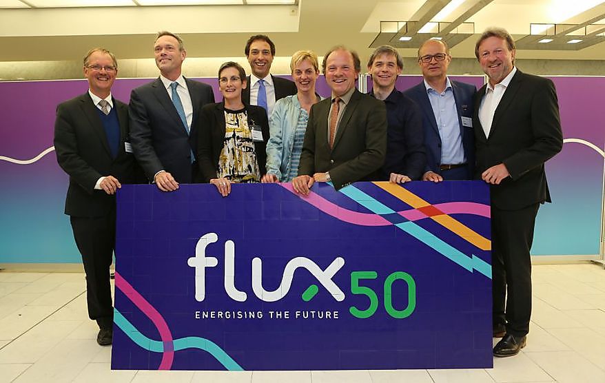De Vlaamse Energiecluster wordt omgedoopt tot Flux50. Frederik Loeckx, algemeen directeur, verklaart de betekenis van de nieuwe naam: “Hij klinkt internationaal en ambitieus. De ‘Flux’ verwijst naar elektrische stroom of warmtestroom, maar is tegelijk een breder concept, want wij kijken voorbij het grid, naar geïntegreerde energiestromen en slimme, digitale toepassingen. De ‘50’ in Flux50 verwijst naar de klimaatdoelstellingen tegen 2050. Er is een grote bereidheid en ambitie om als ‘Slimme Energieregio Vlaanderen’ te werken aan innovatieve, geïntegreerde energieproducten en -diensten. Met Flux50 is er nu een structuur die dat faciliteert. Met een gecoördineerde, internationale aanpak kunnen de Vlaamse bedrijven inspelen op economische groeikansen en de transitie naar een koolstofarm energiesysteem versnellen.” Vlaams minister Philippe Muyters was aanwezig bij de onthulling van de naam, de website en het logo van Flux50: “Het energievraagstuk is een van de belangrijkste uitdagingen van de toekomst. Met het clusterbeleid slaan ondernemingen, kennisinstellingen en de overheid de handen in elkaar om een antwoord te vinden op die uitdagingen. Flux50 doet dit voor energie, VIL voor logistiek, SIM voor materialen en Catalisti voor chemie en kunststoffen. Het zijn de vier speerpunten van het clusterbeleid waarmee we een langetermijnstrategie willen uittekenen.” Van een speerpuntcluster verwacht men een plan dat de groeiambities en internationalisering van innovatiegerichte Vlaamse bedrijven door samenwerking ondersteunt. Flux50, de speerpuntcluster van energiebedrijven, zal innovatietrajecten opstarten in vijf domeinen: energiehavens, microgrids, multi-energietoepassingen op wijkniveau, energy cloud toepassingen en intelligente renovatie.